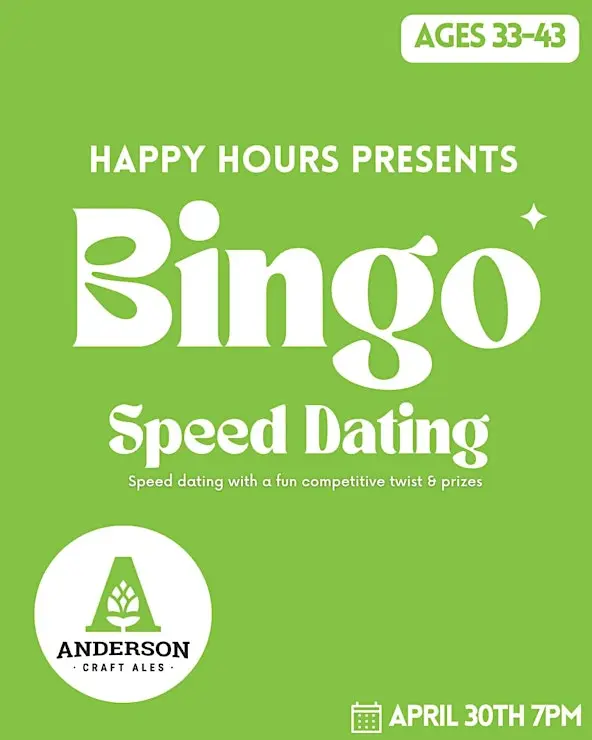 Join us for a fun night of BINGO Speed Dating at Anderson’s Craft Ale. – meet new people, win big, and sip on delicious cider!